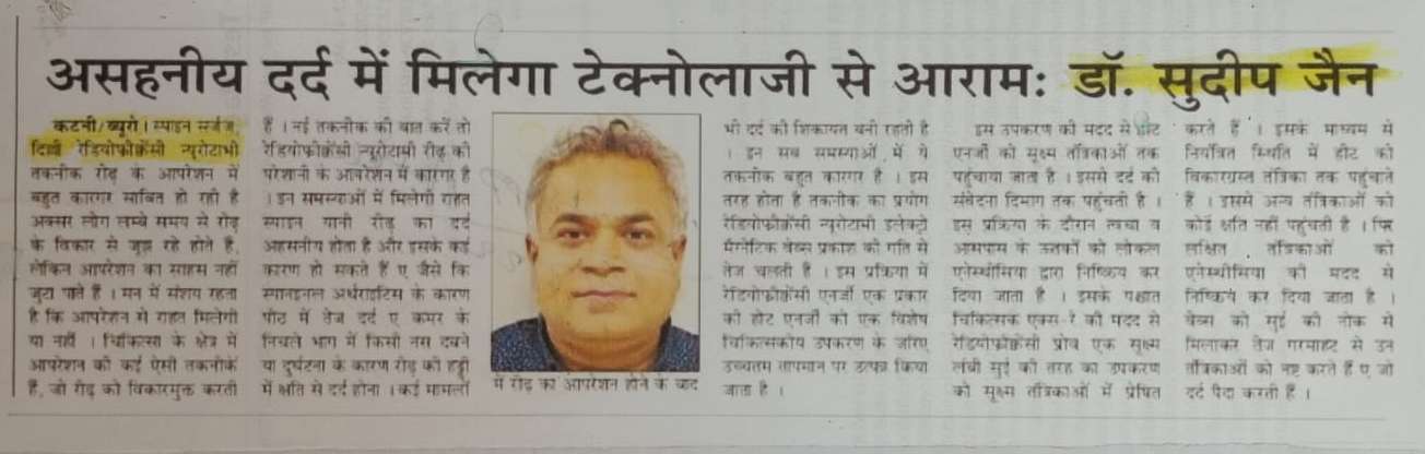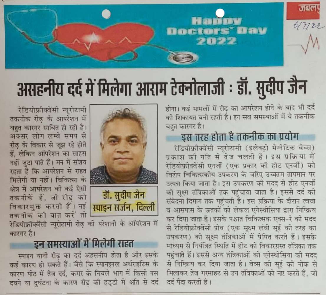 असहनीय दर्द में मिलेगा आराम टेक्नोलॉजी से Dr. Sudeep Jain (Dated 06 July 2022)