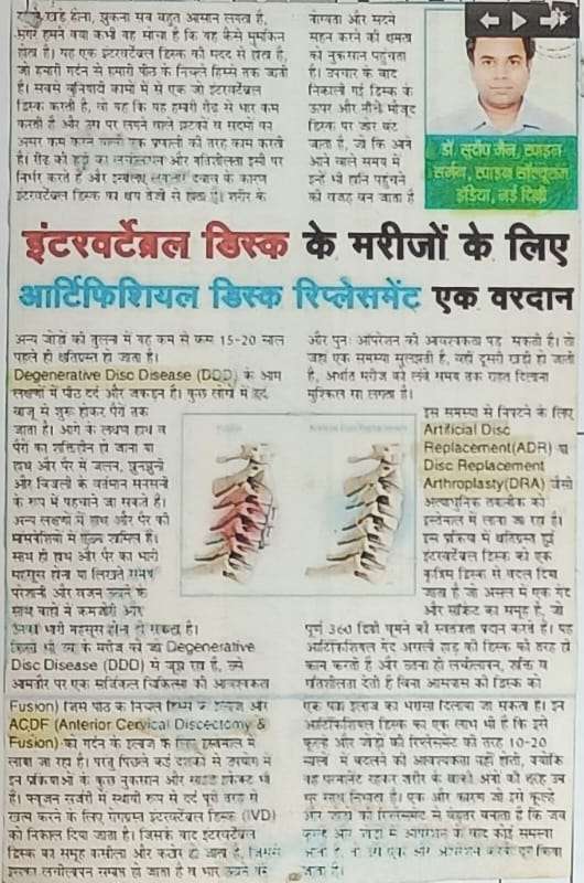 इंटरवर्टेब्रल डिस्क के मरीज के लिए आर्टिफिशियल डिस्क रिप्लेसमेंट एक वरदान