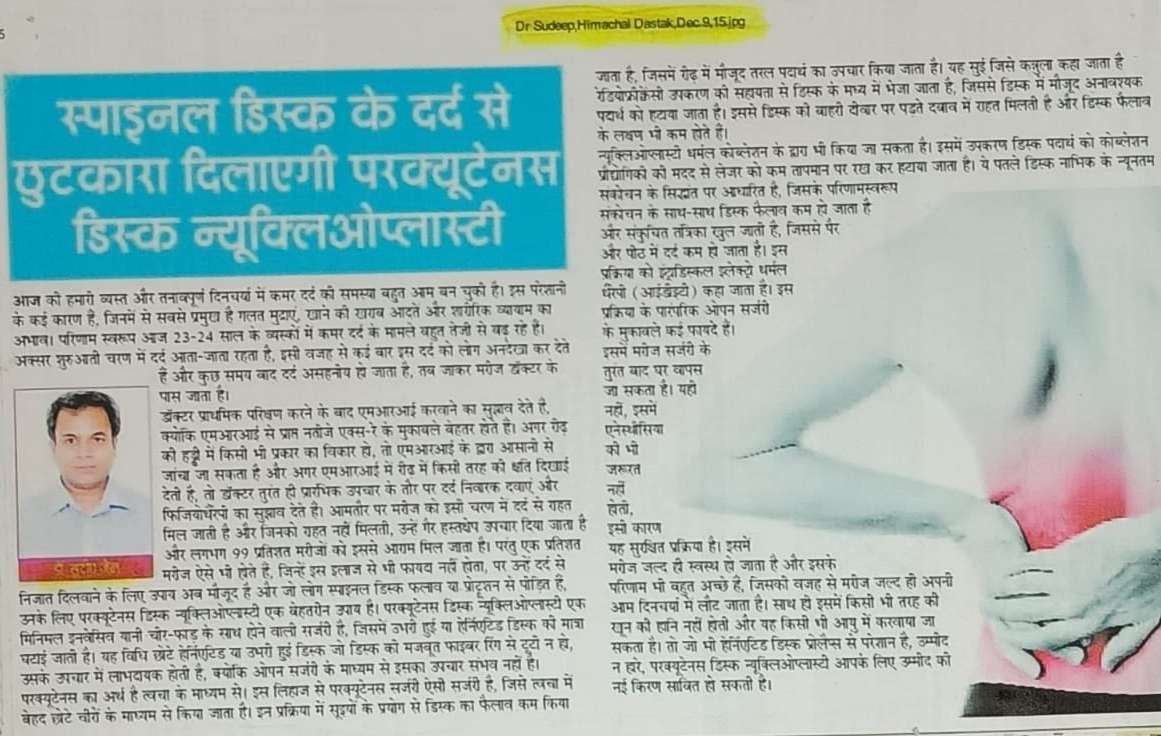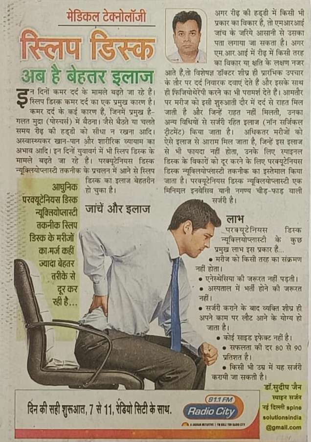 स्पाइनल डिस्क के दर्द से छुटकारा दिलाएगी पर्क्यूटेनियस डिस्क न्यूक्लियोप्लास्टी