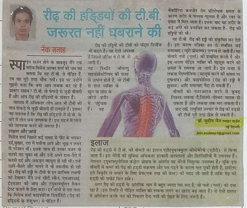 रीढ़ की हड्डियों की टीबी, जरूरत नहीं घबराने की
