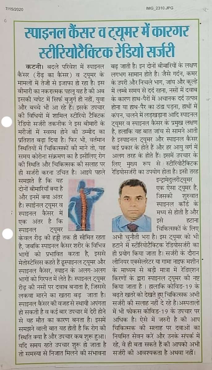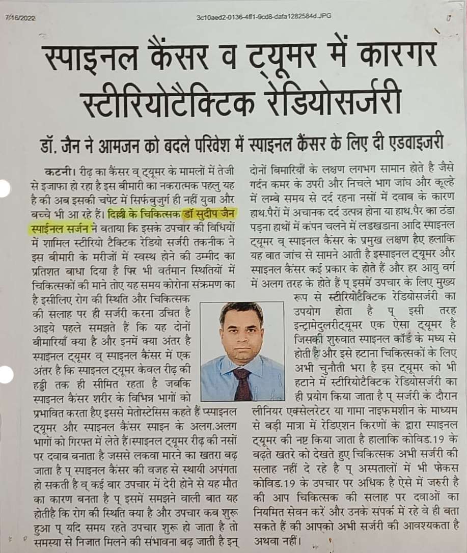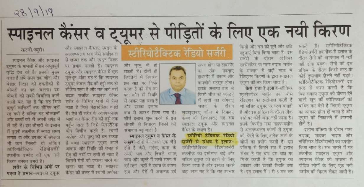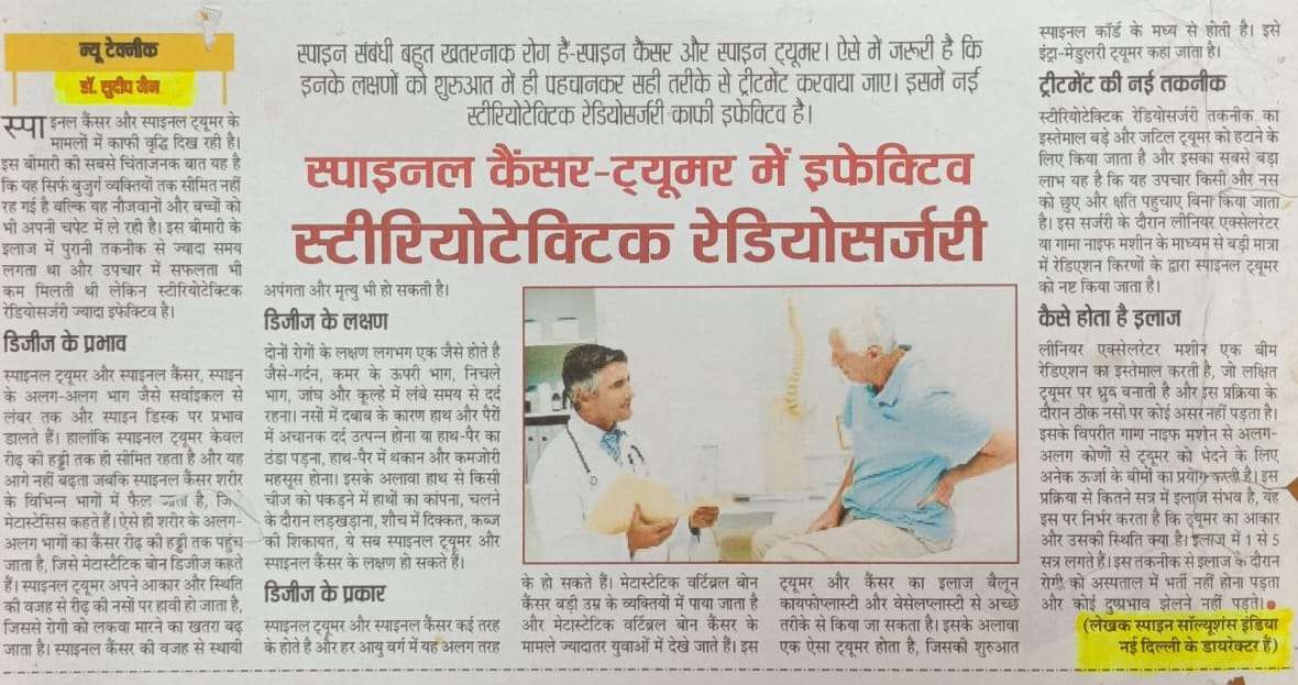 स्पाइनल कैंसर व ट्यूमर में कारगर स्टीरियोटैक्टिक रेडियोसर्जरी