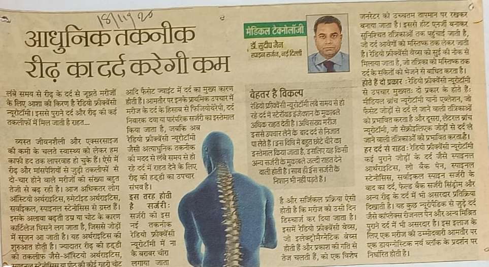 आधुनिक तकनीक रीढ़ का दर्द करेगी कम (Dated 18 Nov 2020)