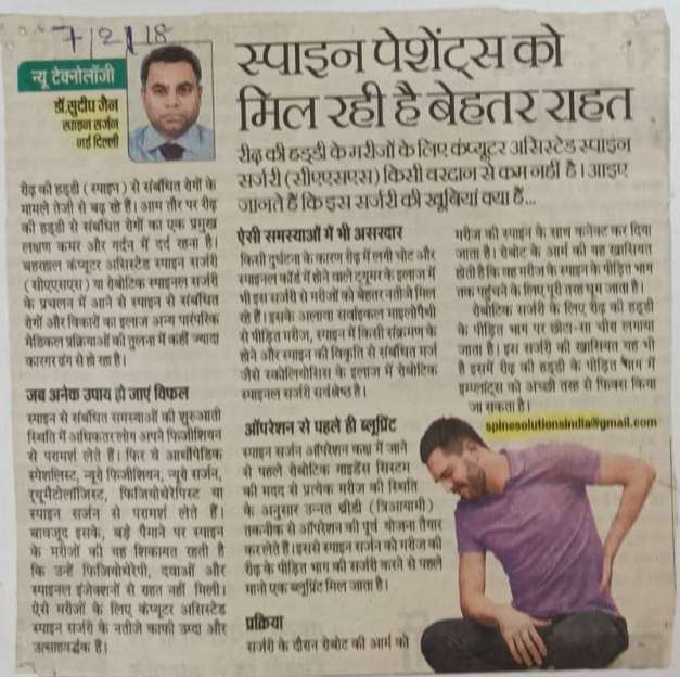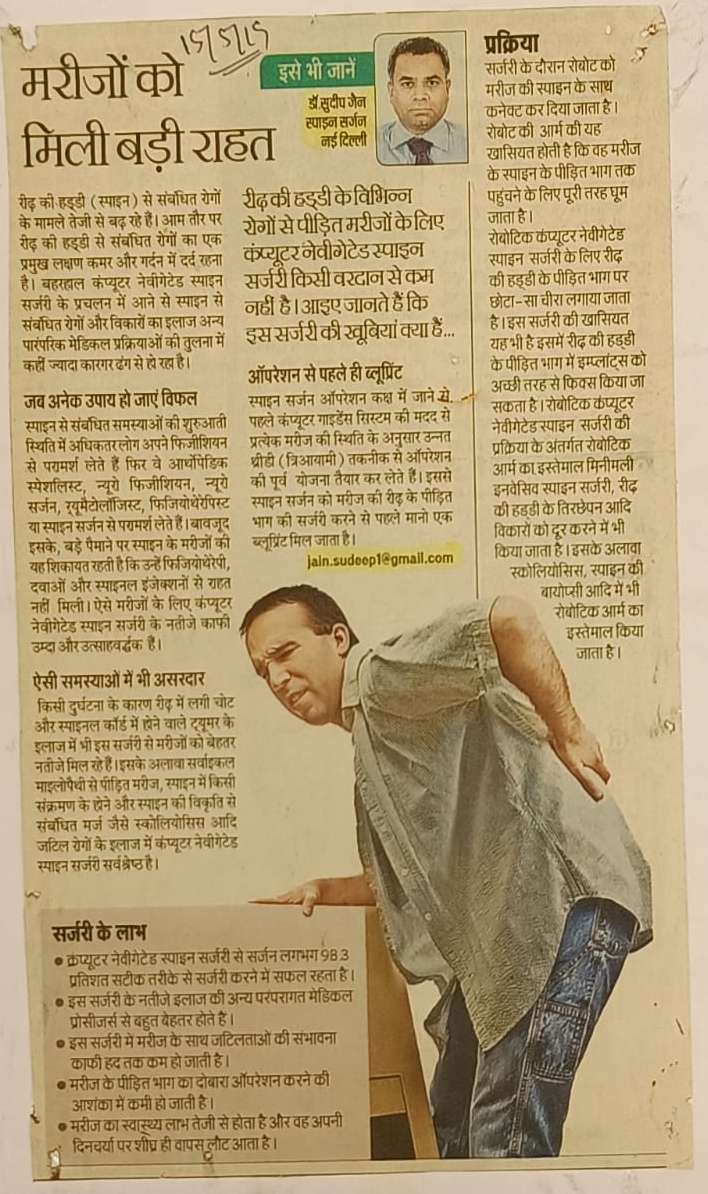 कंप्यूटर असिस्टेड स्पाइन सर्जरी मरीजों को मिली बड़ी राहत