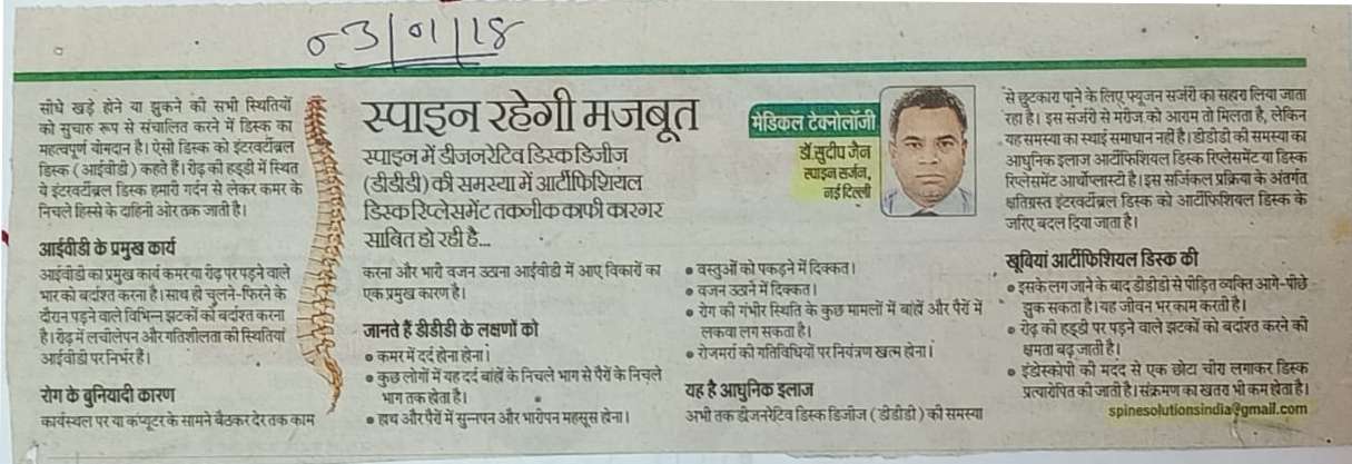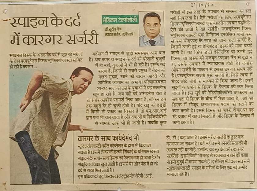 स्पाइन के दर्द में कारगर सर्जरी (Dated: 21-Oct-2020)