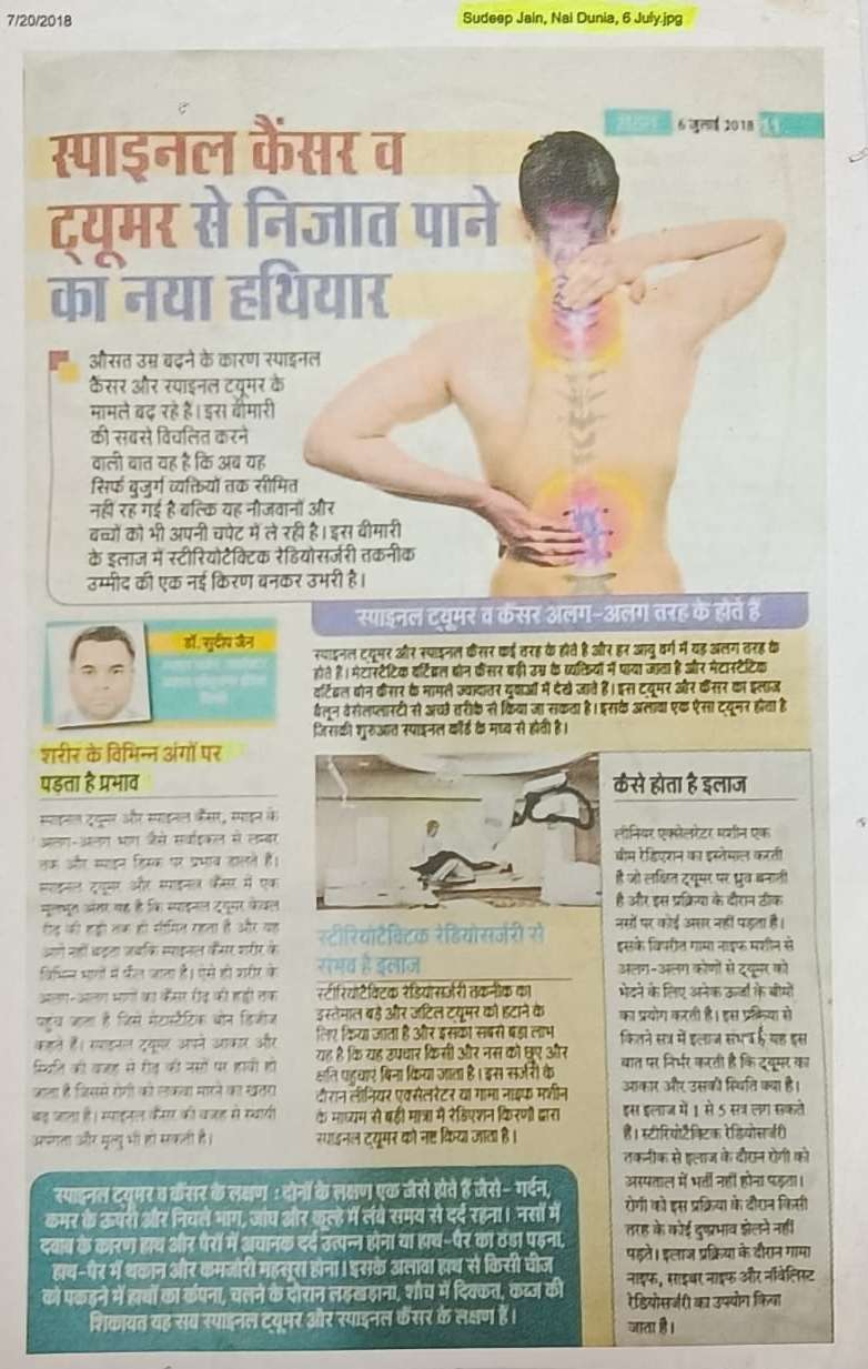 स्पाइनल कैंसर के उपचार में पुरानी से ज्यादा कारगर है नई तकनीक